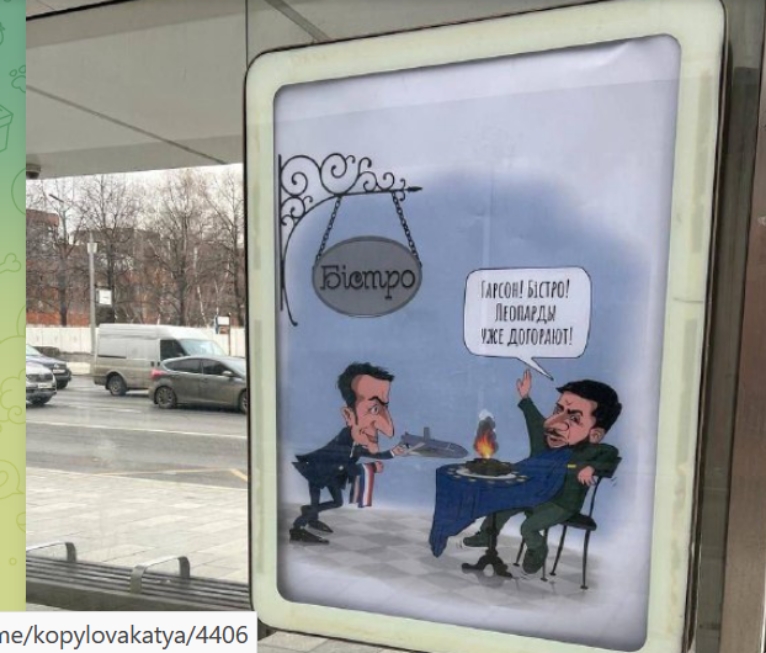 Les Léopards sont les chars « invincibles » de l’Otan. Et « bistro » est un legs – ou jugé tel – à la France, à Paris en particulier, des Cosaques de 1814. Ce qui est devenu « bistrot » ou encore « bistroquet » en français. Les français croyant que les Cosaques russes réclamaient un endroit pour boire quand ils demandaient tout simplement aux petits Français de se grouiller… à les servir !