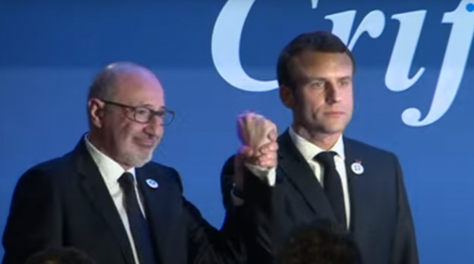 Nota bene : sur la photo, on voit que l’ex-président du CRIF est tenu par Macron, qui a de la poigne. Kalifat est aux mains de notre président, qui semble terroriser le vieux à lunettes. Le président de la République a vraiment tous les pouvoirs, le malin !