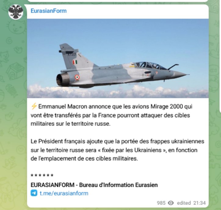 ⚡️La France fournira cinq avions de chasse à l’Ukraine et formera des pilotes pour Kiev, a annoncé Emmanuel Macron.