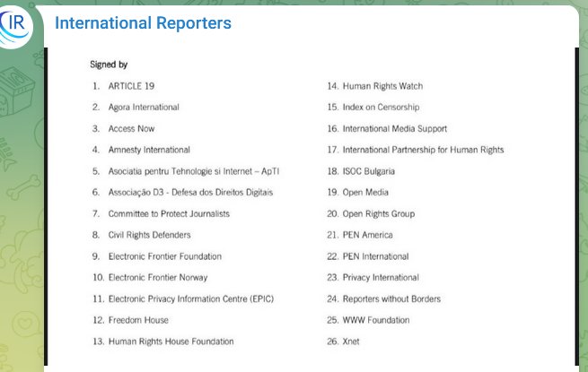 Ces ONG occidentales ont appelé les autorités russes à cesser de créer des obstacles au travail de Telegram. Ils ont appelé l’ONU, le Conseil de l’Europe, l’OSCE, l’Union européenne, les États-Unis et d’autres gouvernements à résister aux actions de la Russie et à protéger les droits fondamentaux à la liberté d’expression et à la vie privée. En outre, ils ont appelé les sociétés Internet à s’opposer aux demandes déraisonnables et illégales qui violent les droits de leurs utilisateurs. Ils ont exigé que les autorités russes garantissent le droit des utilisateurs du réseau mondial de publier et de consulter de manière anonyme des informations sur les sites Internet, soulignant que toute restriction doit être autorisée par le tribunal et pleinement conforme aux dispositions de la Convention européenne des droits de l’homme.