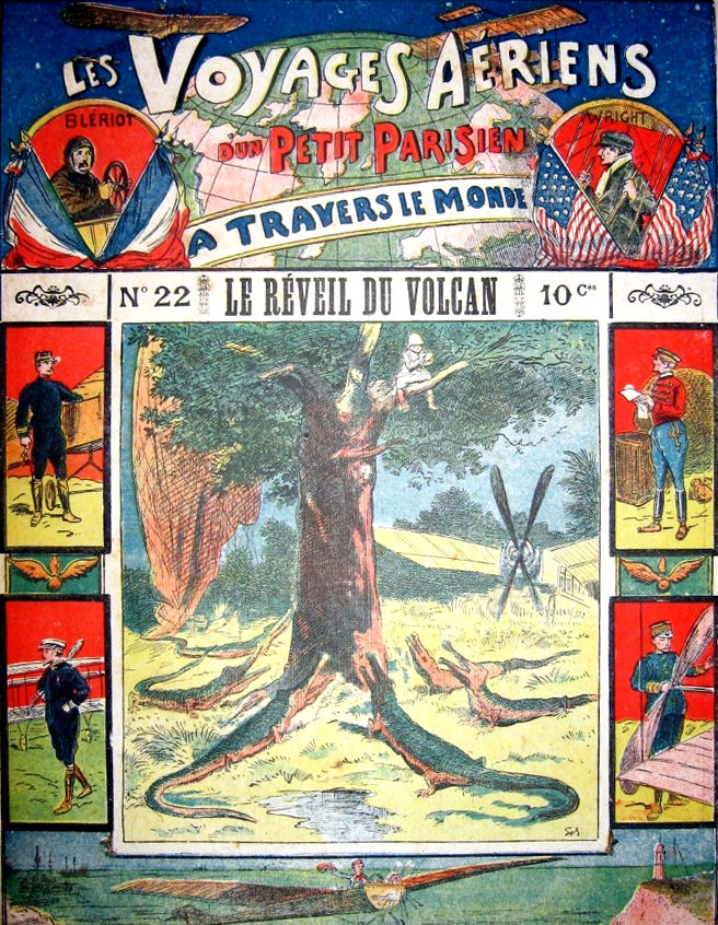 Mais il en est un que je n’avais pas repéré en rédigeant cette étude, ou du moins je ne m’en souviens plus trop. C’est le personnage de Tintin, le petit Parisien. Ici, on n’est plus exactement dans la bande dessinée – encore essentiellement sans phylactères, et à texte explicatif ou dialogues souscrits – mais dans la littérature populaire, et les romans d’aventures en fascicules hebdomadaires, bimensuels ou simplement mensuels, illustrés, bon marché.
