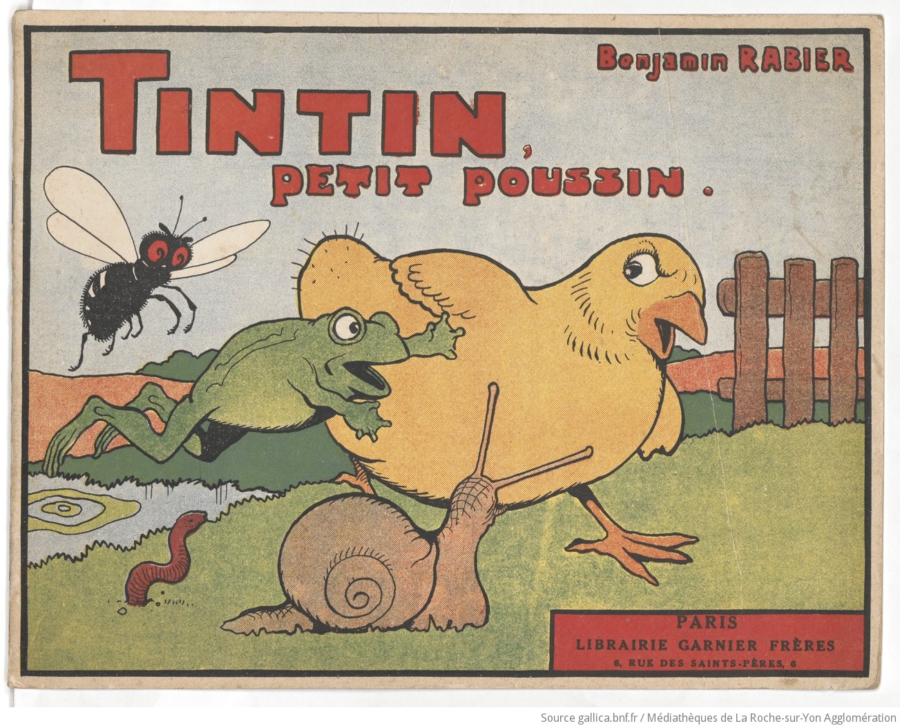 Et dans mon étude sur Tintinel, j’évoque entre autres petits personnages des bandes dessinées anciennes, Tintin-Lutin pré-publié en 1897 dans Le Rire et dont l’album a été publié en 1898. Petit chenapan (il lui arrive de semer des clous sur les routes, destinées aux roues des vélocipèdes) créé par l’illustrateur Benjamin Rabier (1864 – 1939) et « mis en paroles », en vers (des décasyllabes pas toujours très réguliers) par Fred Isly, pseudonyme de Fernand Amson (1863 – 1920), dramaturge qui fut aussi romancier, et également directeur du « journal humoristique hebdomadaire » Le Pêle-mêle (journal qui, quant à lui, vécut de 1895 à 1930). Il a collaboré à plusieurs albums de Rabier. Ce Tintin-ci a pour prénom complet Martin.