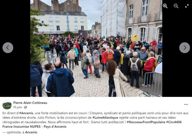 Cependant, à sa décharge, on l’a vu manifester en juin dernier pour faire barrage au RN et aux idée d’extrême droite. Comme il l’écrivait : « (…) rejette votre parti haineux et ses idées rétrogrades et nauséabondes. Nous affirmons haut et fort : Siamo tutti antifascisti ! » [« nous sommes tous anti-fascistes »]. L’antifascisme, une histoire de paille et de poutre, probablement.