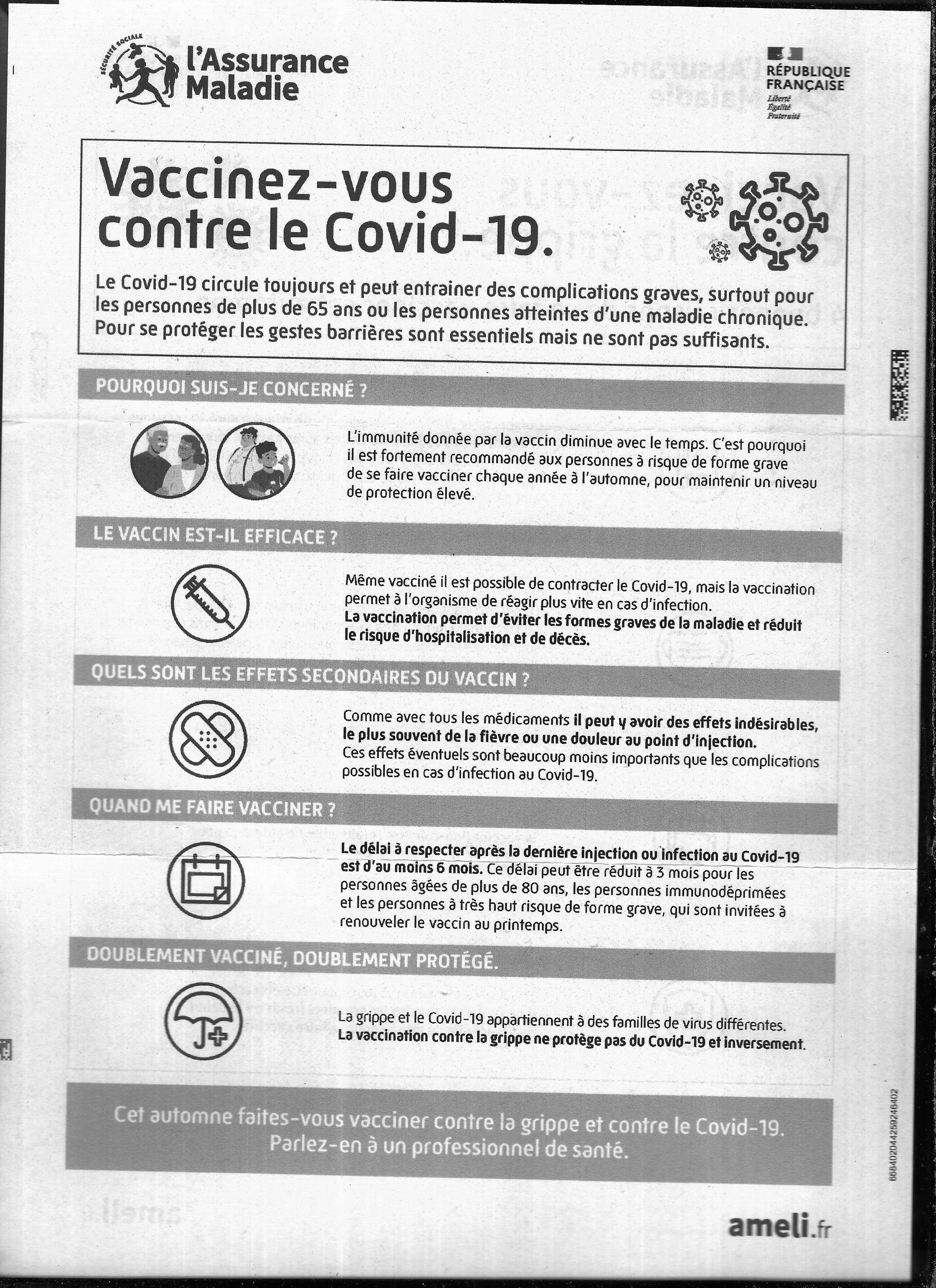 Mais fort heureusement (sic), « ce délai peut-être réduit à 3 mois pour les personnes âgées de plus de 80 ans, les personnes immunodéprimées et les personnes à très haut niveau de risque de forme grave, qui sont invitées à renouveler le vaccin au printemps ». Une personne à très haut niveau de risque de forme grave, c’est fait comment ? De quoi est fait le risque covid grave ? Il serait si simple de prendre une dose chaque matin, dans les EHPAD en particulier, ça les décongestionnerait, ces bouffe-fric de la Sécu ou des conseils départementaux avec L’Allocation Personnalisée d’Autonomie.