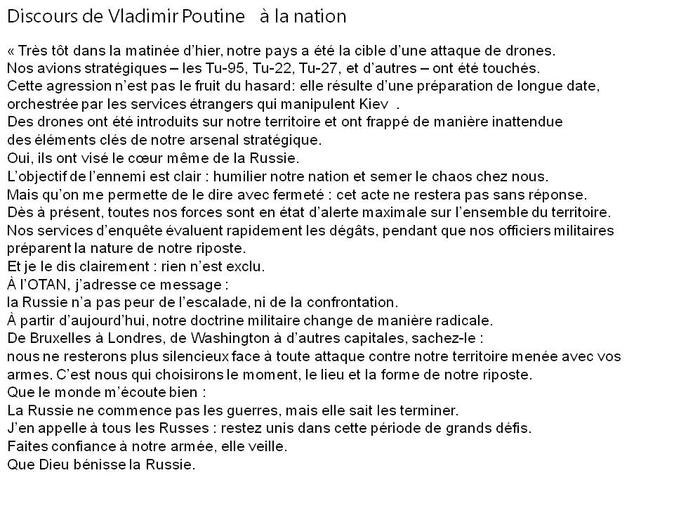 Poutine sur l’Ukraine : «Ils ont préparé leur propre fin» (en attaquant des bombardiers stratégiques)