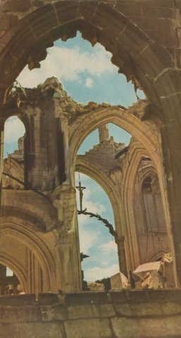 Et en France… L’église Saint-Vincent, ou plus exactement cette ancienne église catholique de style gothique, située à Rouen, a été presque entièrement détruite par un bombardement anglo-américain en mai 1944. Photo extraite de la presse de l’époque. Un objectif militaire stratégique?
