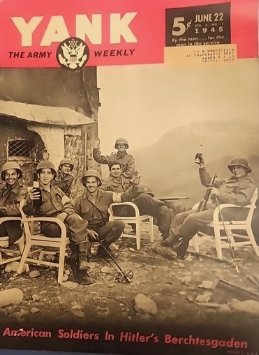 Je cite, mot à mot, intégralement, ce passionnant article. Avant de le traduire. Et de le commenter (ou de commencer à le commenter). L’auteur, Debs Myers, ici indiqué comme Pfc. (Private First Class), était un important journaliste américain (décédé en 1971). Et son article est paru dans le magazine Yank, le magazine officiel de l’armée américaine (ici, en juillet 1945, donc deux mois après la chute du Troisième Reich et quelques jours avant Hiroshima et Nagazaki).