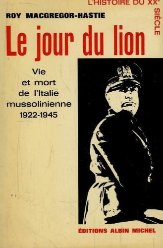 *MacGregor-Hastie, Roy, « Le jour du lion : vie et mort de l’Italie mussolinienne » (1922-1945), traduit de l’anglais par Marguerite Mathieu (The day of the lion : the life and death of fascist Italy), Albin Michel, 1965.