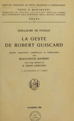*La geste de Robert Guiscard / Guillaume de Pouille ; édition, traduction, commentaire et introduction par Marguerite Mathieu ; avec une préface de M. Henri Grégoire / Palermo : Istituto siciliano di studi bizantini e neoellenici , 1961.