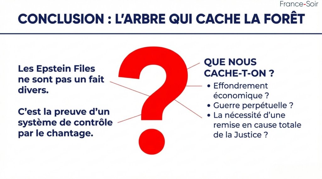 En somme, les « Epstein Files » éclaboussent tout le monde et monopolisent l’attention pour cacher des crises plus profondes. Est-ce l’arbre qui cache la forêt ? Très probablement. Alors, que rate-t-on ? Que nous cache-t-on derrière les « Epstein Files » ? Une économie au bord du gouffre ? Des guerres prolongées artificiellement ? Des forces qui disent une chose (la paix) mais œuvrent pour l’inverse (un conflit perpétuel pour le profit) ?