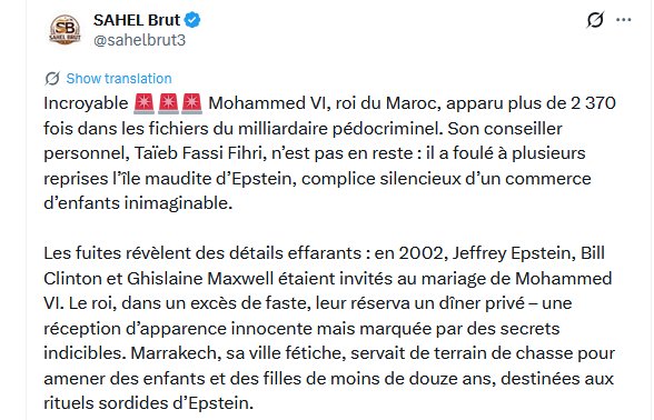 [remarque en passant : on peut noter une proximité certaine entre la monarchie marocaine et le sionisme, y compris au niveau du génocide palestinien]