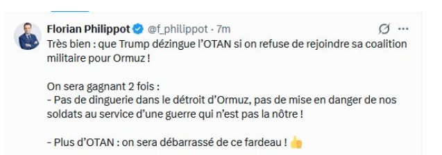 – Quand il parle de bâtiment, il s’agit d’un navire militaire français qui pourrait traîner du côté du détroit d’Ormuz ou du côté de la Mer Rouge où les Houthis du Yémen se feront une joie, si je puis dire, de détruire quelque frégate française, voire mettre à mal notre porte-avions militaire.