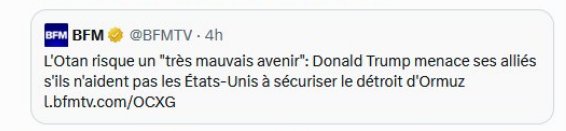– Quand il parle de bâtiment, il s’agit d’un navire militaire français qui pourrait traîner du côté du détroit d’Ormuz ou du côté de la Mer Rouge où les Houthis du Yémen se feront une joie, si je puis dire, de détruire quelque frégate française, voire mettre à mal notre porte-avions militaire.