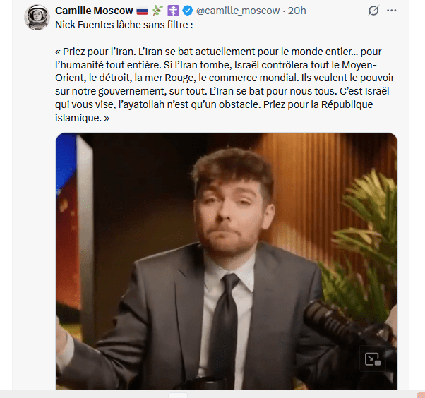 Nicholas dit Nick Fuentes, formé sur les réseaux sociaux, est un personnage au combien sulfureux du mouvement MAGA (Make America Great Again) en perdition (c’est le mouvement qui est en perdition) qui a pris radicalement ses distances avec le siono-trumpisme.