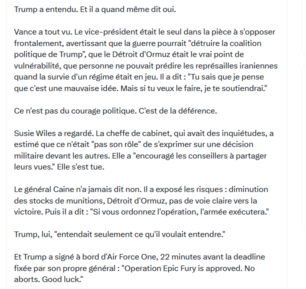 Operation Epic Fury is approved. No aborts. Good luck : L’opération Epic Fury est approuvée. Pas d’annulation. Bonne chance !
